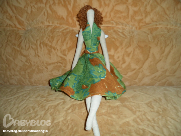 Давно нравятся эти куколки, поэтому решилась попробовать тоже сшить. На машинке шить не особо умею, но все же куклу шила на ней, а не руками. Не судите строго. Кожа получилась бежевой (на фото вспышка, поэтому цвет другой) как я не старалась красить в кофе, темнее не получилось. Но опыт придет со временем, думаю.