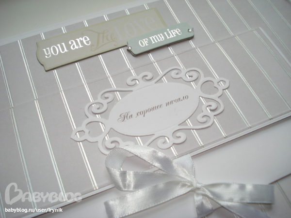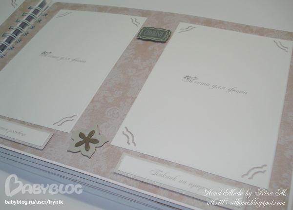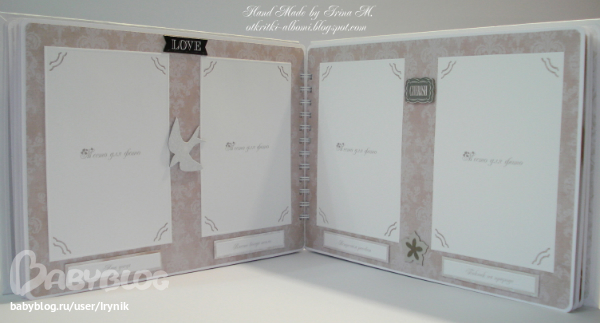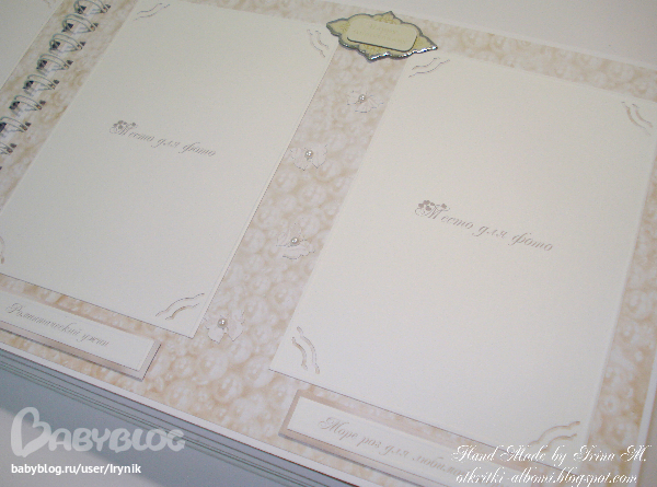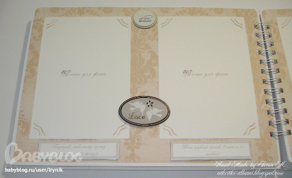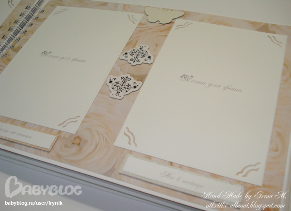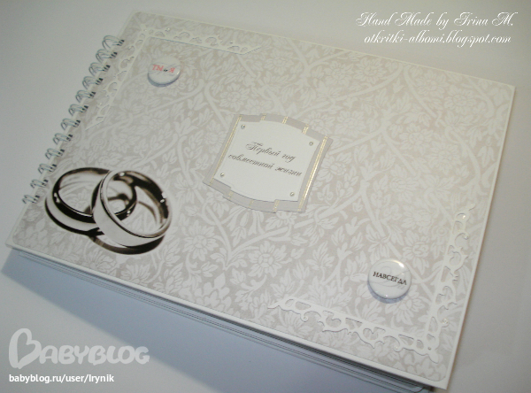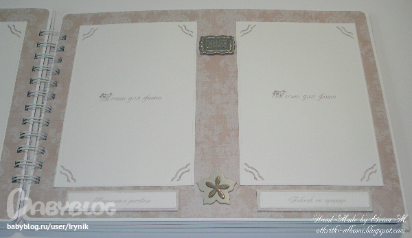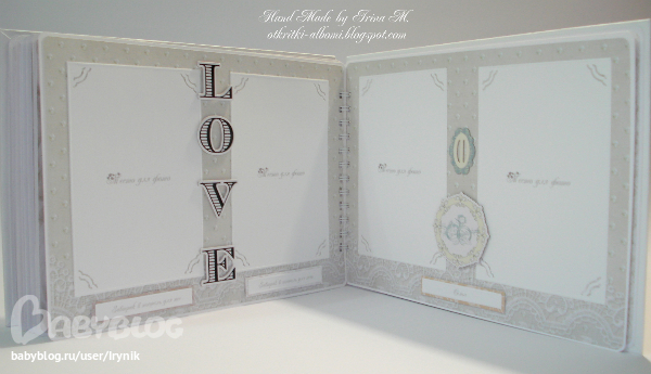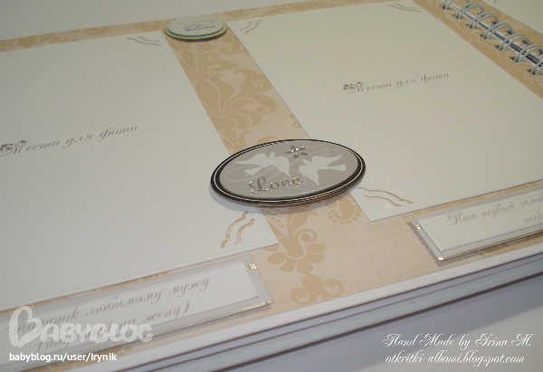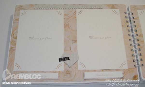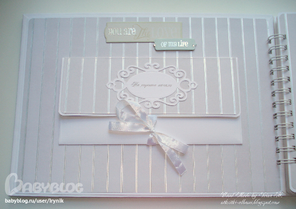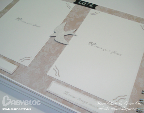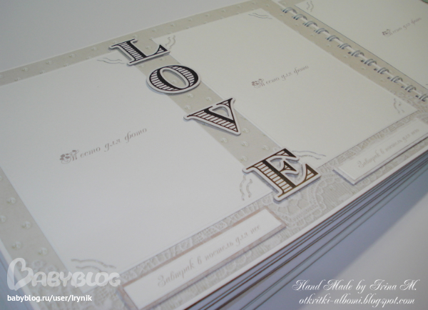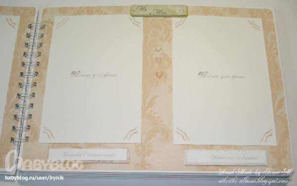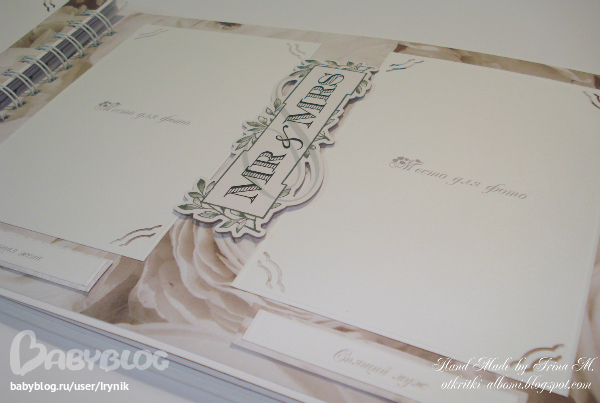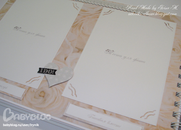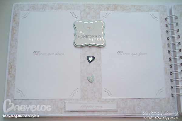 СкрапбукингАльбомчик получился нестандартный свадебный, а с заданиями для молодоженов. Заказчица хотела, что бы альбом включал в себя задания, которые молодожены должны выполнить в свой первый год совместной жизни. Поэтому под каждой фотографией есть подпись того или иного задания, например: "Наш досуг", "Мы в театре", "Запускаем небесный фонарь", и т.д. На мой взгляд очень романтичная и интересная идея (люблю, когда креативят). Я была в восторге, когда мне её озвучили концепцию альбома, прям ручки "зачесались".