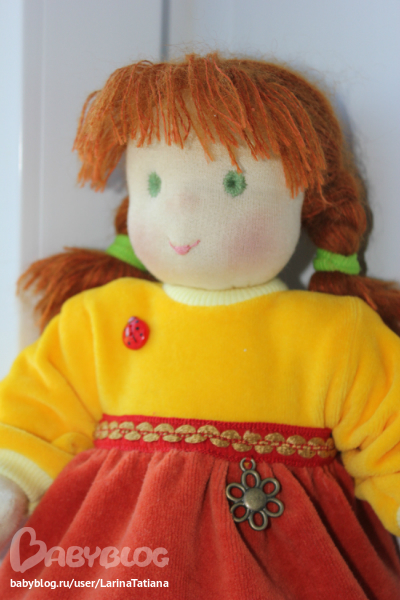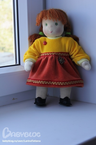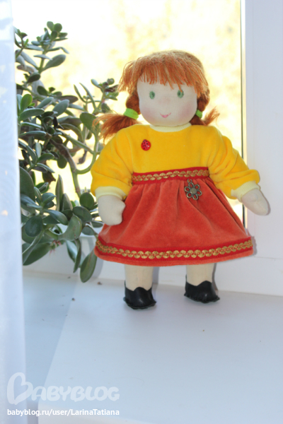 Ну, не знаю.... но имя почему-то не придумалось. А вообще-то, подружка очень просила подарить им такую куклену.... Вот я и сшила... И решила, что имя ей пусть даст будущая хозяйка. Поэтому и назвалась девочка-осень, а не Машуня или, например, Катюша... Да и рыжая она такая же, как ее будущая мамочка! И как осень....