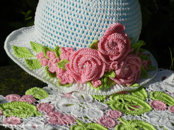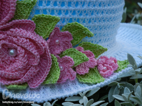 это схемв дна шляпки.. вяжем до нужного диаметра(окружность головы делить на 3,14) далее без прибавок столбики в шахматном порядке.. я вязала в арочку, а не в воздушную петлю.. вяжете до нужной высоты и потом 2 ряда ст. без накида.. в третьем ряду прибвка в каждую третью петлю.. а поля- чередование ст с накидои и рельефного столбика. или можете как на схеме... остальные цветочки вязала из головы, чтобы по размеру подходили.. если надо будет напишу...