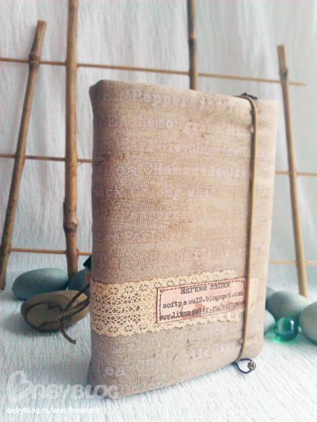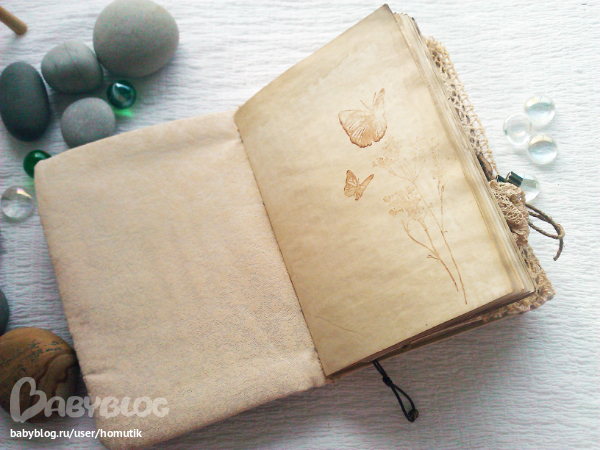Формат А6. Блок из бумаги плотностью 65г/кв.м., 96 листов (192 стр.) тонирован-ароматизирован вареным кофе и корицей, некоторые страницы украшены штампами. Обложка мягкая из американского хлопка, смятого и тонированного кофе, с ароматом корицы. Внутри проложен флис, дополнительно ткань проклеена синтепоном . Закладка - вощеный шнур, декорированный металлической подвеской . Софтбук закрывается на резинку. Распечатки текста на кофейной бумаге из книги о волшебной стране Оз.