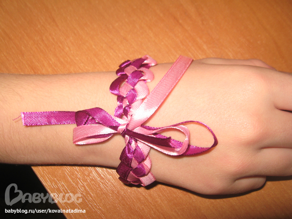 Чтобы такая красота не пропала, опалите края ленточек зажигалкой, распускаться не будут. Молодей доченька!