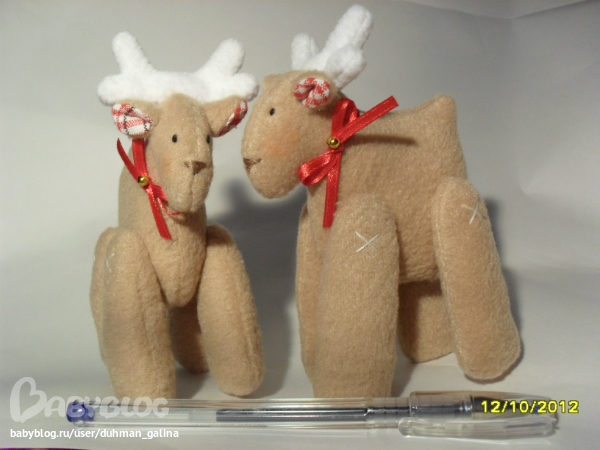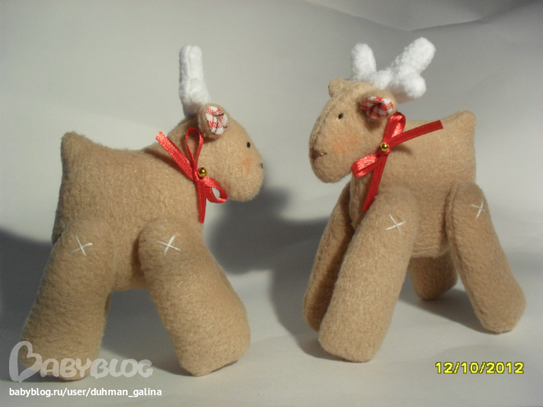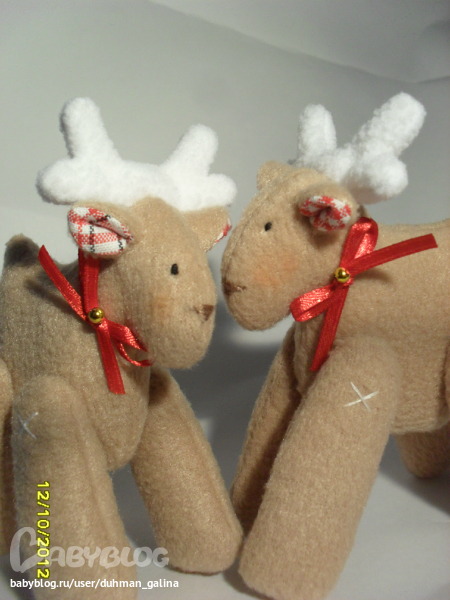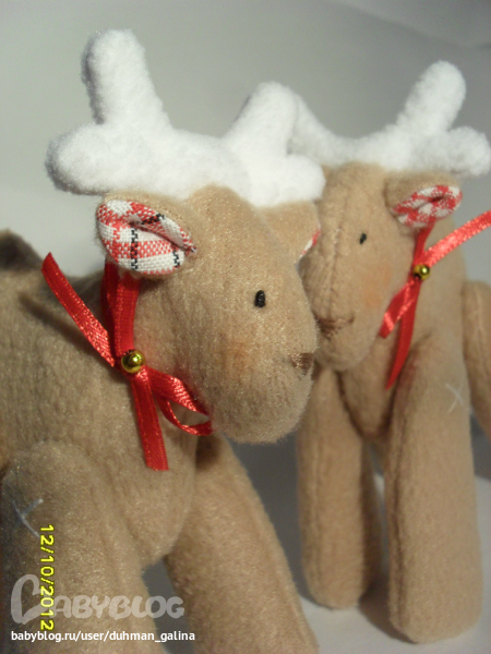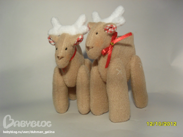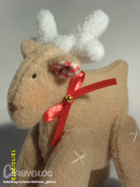 Когда только первого сшила,он был тогов только без рогов и бантика)))Славка пришел смотреть что я делаю,потом увидел его и говорит "АЯЙ" ( это в переводе со Славкиного СОБАКА),кстати без рогов и в правду на собачку смахивает)))