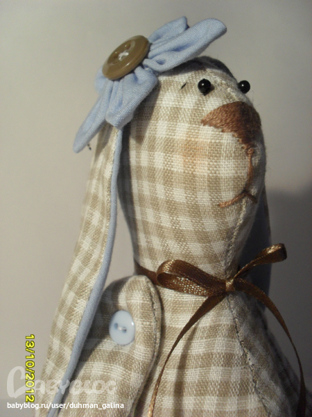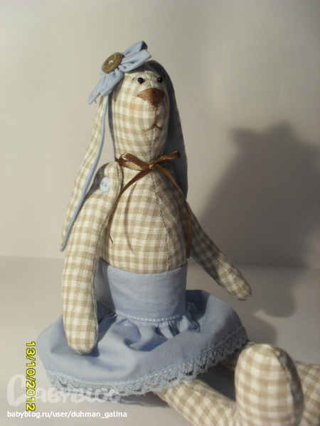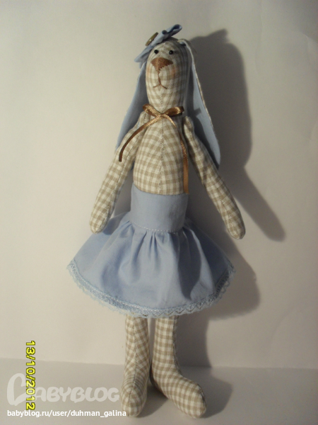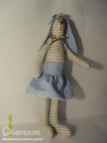 Зайка из льна,обожаю эту "клеточку"...Шила на руках,на машинке только ушки и юбочку))
