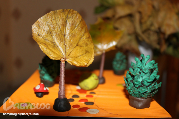 Соня красила ёлки, ну и себя конечно )) выкладывала камушки на тропинке, точки на мухоморы, а-ля ромашки, красила Колобка (я только мордашку ему нарисовала) и "сажала" деревья с ёлками.