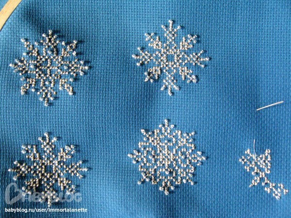 а я бежевую картинку оформлю в виде маленького пинкипа. а голубую как подушечку. снежинки вышивать не буду, пришью паетки. а еще хочу бубенчики купить))