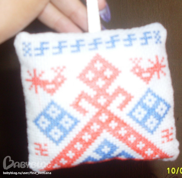 говорят, что да нельзя самой себе вышивать и просить кого-то тоже нельзя. Я зная проблемы знакомой решила ей вышить его. Она очень удивилась, но была рада)))