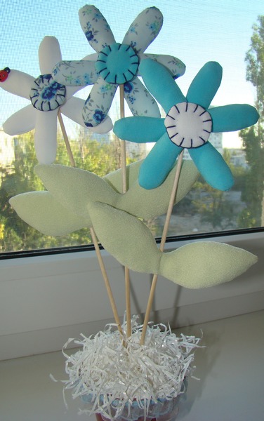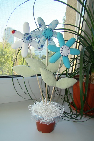 Захотелось подруге на работе подарить подарок, сделанный своими руками и вот, получился такой цветочек(ки). Т.к. рукоделием никто на работе не занимается, у многих вызвало удивление, что это сделано руками.