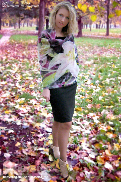 Да,Маша,мне матовый бархат тоже больше понравился на ощупь.Приятный такой,плюшевый,можно даже сказать уютный. А рисунок твой или шаблон?Все таки с бархатом очень сложно работать,а ты умничка,так хорошо расписала палантин .Я сейчас не имею возможности заниматься росписью дома(ремонт идет),только в студии у Сергея.Вот скоро как начну !!!!!!!И тоже буду выставлять на суд свои работы,задумок очень много.Тут увидела салфетку для декупажа,красивая такая.....засела у меня идея такой платок сделать. А про запаривание дома-главное не бояться и все правильно скрутить в газету.Еще раз пишу-ПАЛАНТИН ВЕЛИКОЛЕПЕН!!!
