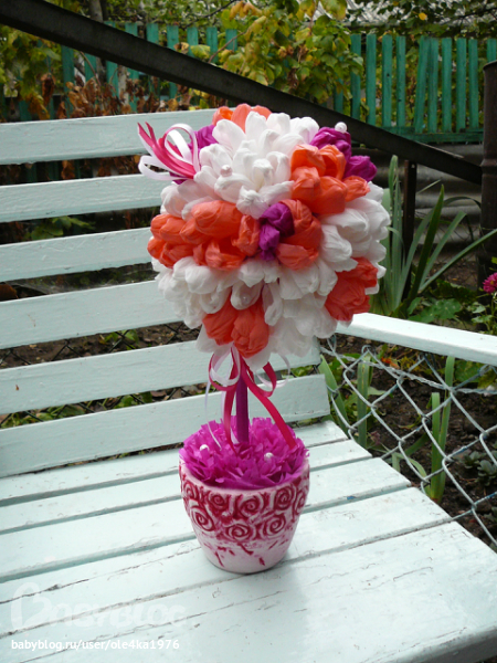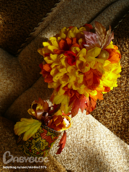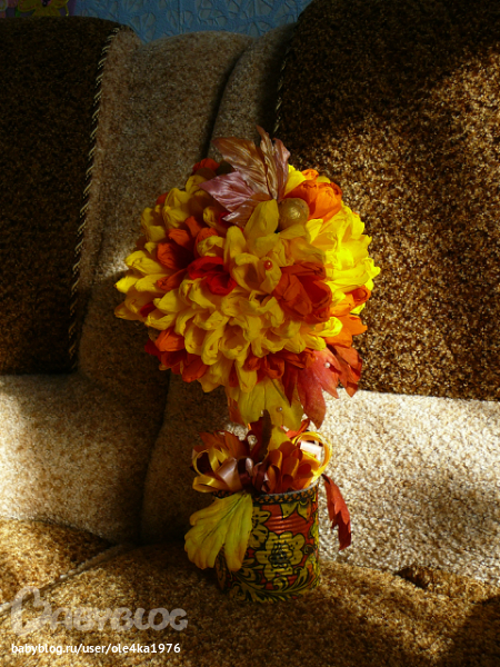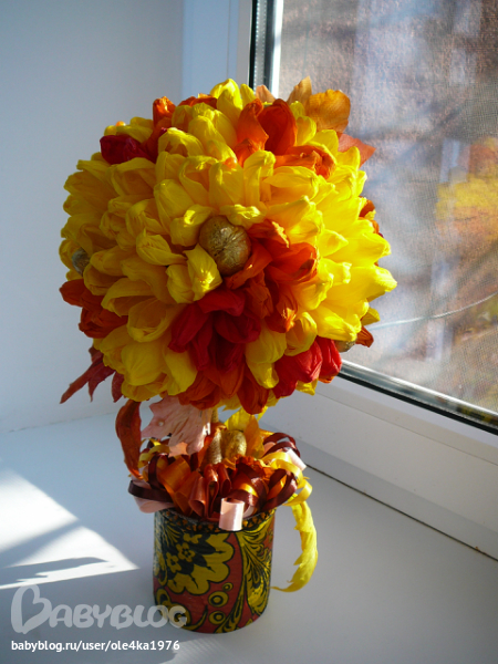 очень красиво. а можно скунуть ссылку как делать цветы? я так поняла цветы из гофре бумаги? осенние супер
