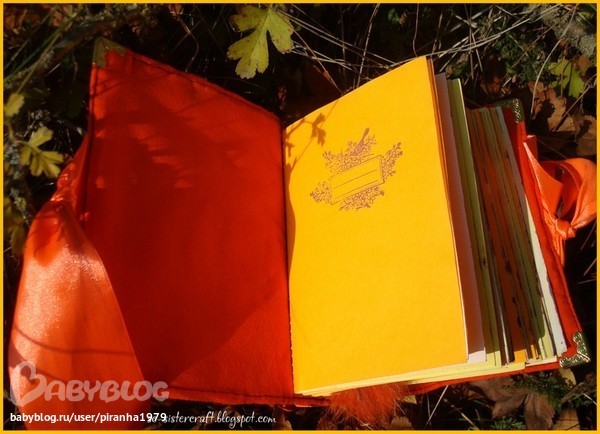 СкрапбукингЯркий осенне-рыжий цвет ткани идеально подходил под осеннее настроение. Софтбук формата А6, 72 листочка, часть из них вручную окрашена, остальные – слегка состарены настоем из трав. Цвета листочков – самые осенние: от ярко-оранжевых и желтых до нежно-розовых и персиковых. Много фото и деталей - в блоге.