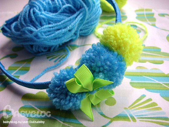А почему бы не использовать их как зимний аксессуар? Вот такой теплый ободок из помпонов у меня получился..