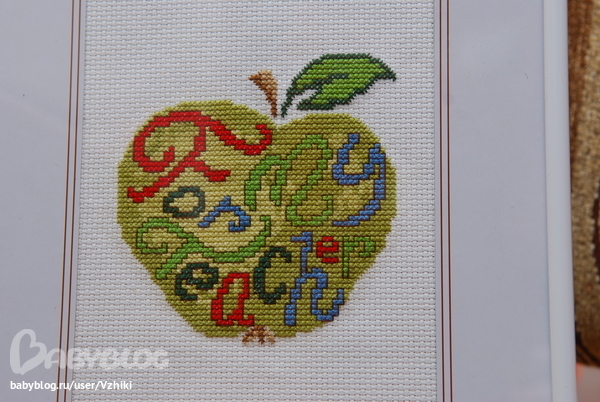 А вообще, если посмотрите поэтапно, то это удобная идея для быстрого подарка: буковки отдельно формируют сердечко; фон яблочка вместо зеленого можно поменять на красный или другой удобный и вышить не яблоко, а сердечко, если хочется с фоном) я попыталсь сфотографировать поэтапно, чтобы вы смогли оценить, как на деле это получается)