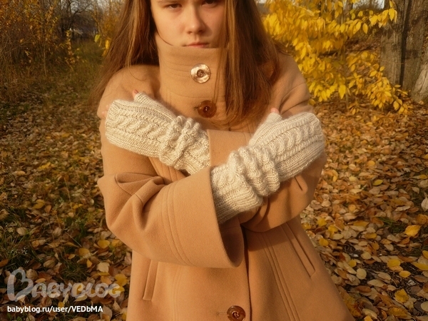 Купили мы пальтишко,а рукава у него широкие, а ветра у нас сильные. Вот и решили вязать длинные митенки к пальто. Эммм, очередные в общем. Видимо по правилу одни митенки хорошо, а несколько еще лучше.