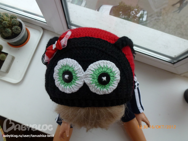 пряжа троицкая Люкс 100%мериносовая шрсть, ушло 4 мотка красной и почти 2 мотка черной, вязала в 2 нитки, крючок 3.5