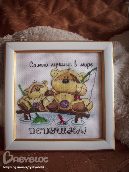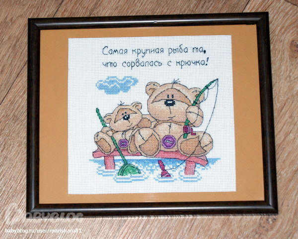 Вы очень классно оформили, а можете на мой емейл anastaxu@ya.ru схемку вышивки, так хочется сделать другу) "Физзи рыбак"