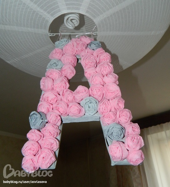 Изделия из бумаги, папье-маше, квиллинг.Для оформления ДР Алисы сделала вот такую вот скромненькую буковку.