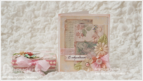 СкрапбукингВот такой набор - открытка и коробочка в подарок новорожденной девочке - сделался у меня из остатков бумажек от альбома для балеринки:)