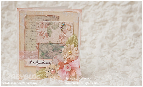 открытка в стиле шебби. Внутри место для самостоятельного заполнения.