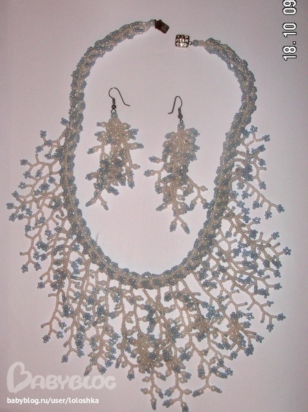 Бисер. Бисероплетение. Украшения из бисера.Давно ещё в школе я увлекалась плетением из бисера.Много работ просто дарила,так что у меня почти ничего не осталось((( да фото тоже нет,как-то тогда особо не задумывалась.Но вот одно колье сберегла,мама как-то его и ещё пару работ относила на работу свою(там конкурс был) и выйграла 1 место поезду в Костраму на двоих-это был подарок маме и отчиму.Теперь смотрим)
