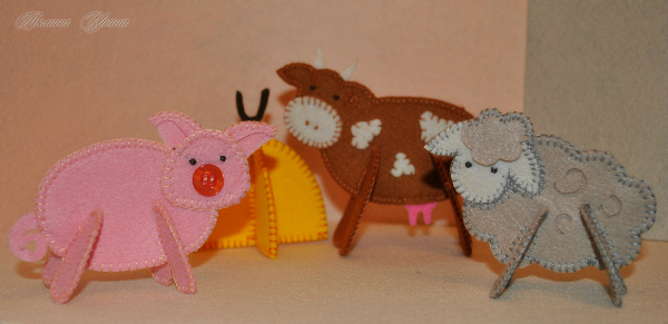 критики не дождешься)))))))))) рассматривала каждую зверюшку- такие все смешные и милые. Очень порадовало вымя у коровки, барашкины завитушки и ушки у свинки.....молодец!!!