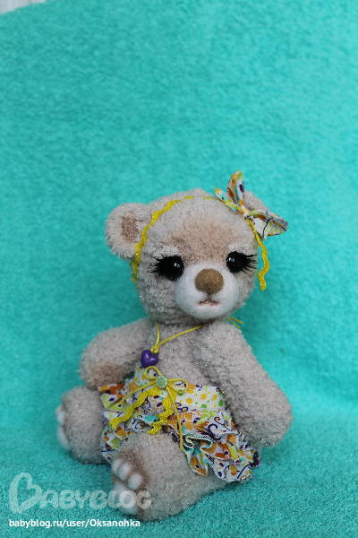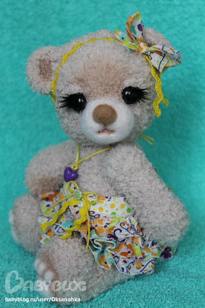 Мишка связана из фактурной пряжи с легким мерцанием, тонирована акриловыми красками для текстиля. 6 шплинтов, набивка - холофайбер, мордочка - сухое валяние.