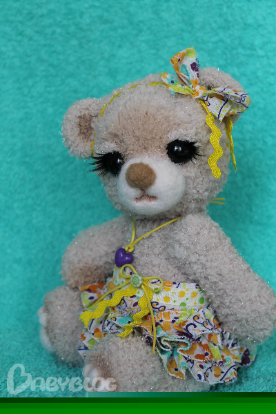 Игрушечный мир - животныеМишка связана из фактурной пряжи с легким мерцанием, тонирована акриловыми красками для текстиля. 6 шплинтов, набивка - холофайбер, мордочка - сухое валяние.