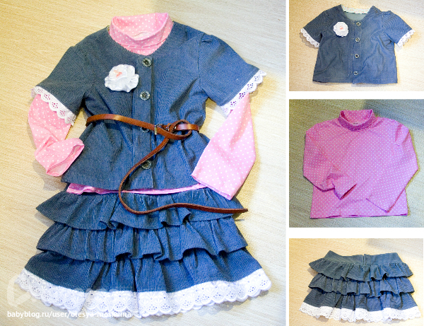 Шитье одежды, выкройки, ремонт одежды, шторы, швейные машины (уже приобретенные)Костюм шился на заказ прекрасной девочке.Надеюсь сама красотка останется довольна,мама уже оценила.Костюм сшит из вельвета заказчицы,(который у нее лежит давненько она не знала куда его применить,а тут принесла мне и сказала-Твори для моей дочки,ну я и натворила) и состоит из юбочки и жакета,который потом можно носить и с джинсами и брюками и т.д.. ,а кофточка с воротом из уже моего трикотажа=)).Костюм отлично сочетается с осенней погодой.Позже будут фото на модели.