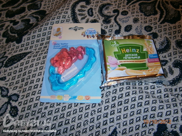 для Катюшки Танечка прислала печенько и прорезыватель для зубов,