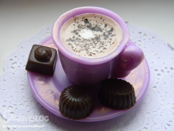 Мыло и косметика своими рукамиКорзиночка - это третья попытка. Предыдущие всплывали. Но тесто у этой корзинки оказалось очень пористым, силикон чуть ли не всю ее пропитал, еле вытащила. Птичье молоко порадовало, самой понравилось.Чашка и блюдце - это свечка , ждала своей очереди с весны))) Запахи разные, все "кондитерские" - Горячий шоколад, Сливки, Черный кофе, Клубничный джем, Вкусняшка, Хлеб.