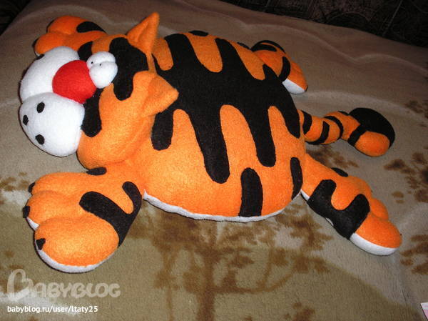 За основу брала подушку-ирушку "Серый кот" с небольшими изменениями в мордочке и вуаля получился полосатый при полосатый "Тигра"