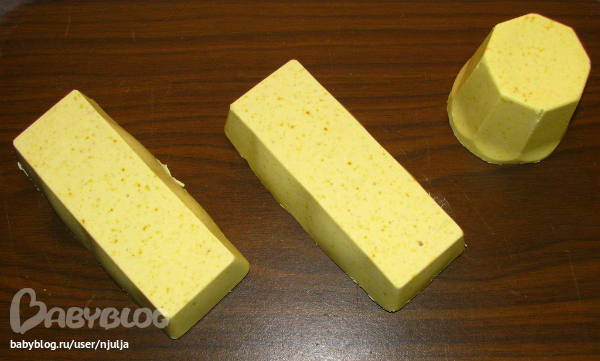 Мыло и косметика своими рукамиСварила вот вчера, пока формочек у меня нет, использовала силиконовые для кексов и один термостойкий пластиковый стаканчик. Ингридиенты - отвар ромашки, оливковое масло, гидроксид натрия, рисовая мука, цедра апельсина и э.масло кедра.