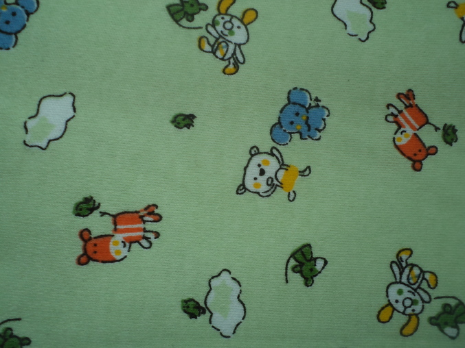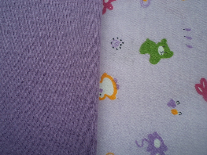 на легкую пижаму подойдёт интерлок-гладкий трикотаж без начеса на изнанке.Цвета есть такие. САмый тонкий голубой и салатовый с мелкими зверушками,салат однотонный чуть плотнее. А остальные еще чуть потолще.
