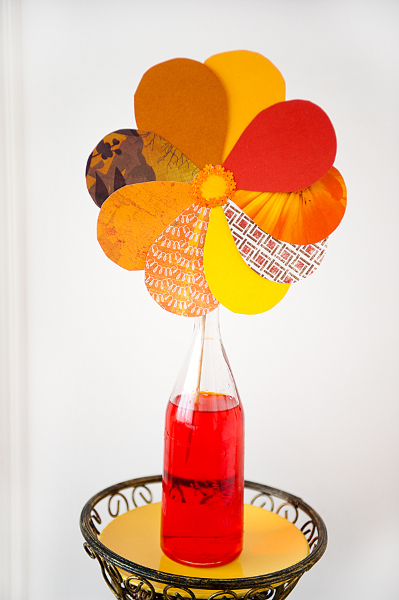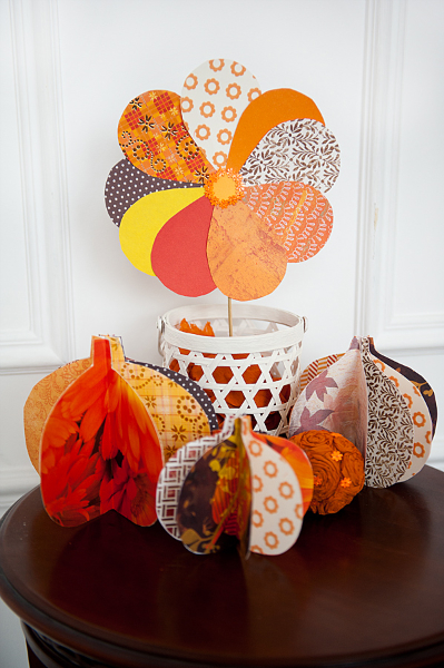 Осенний фантазийный цветок и такие же тыквы. Бумага для скрапбукинга+авторская бумага.