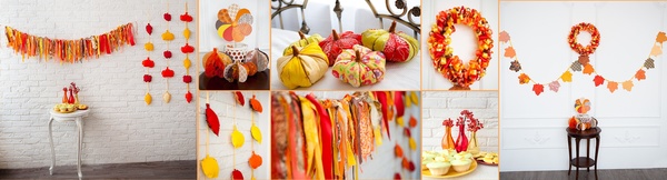 Очень интересные, двухфактурные - тыковки, яблочки и листья...Фетр, американский хлопок,клеевые стразы.