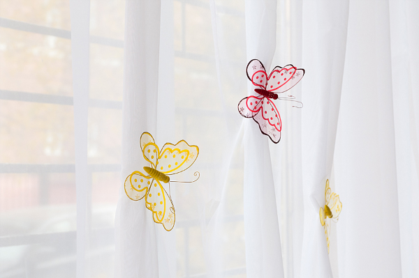 Над кроватью шторы - а на них последние,осенние бабочки)))