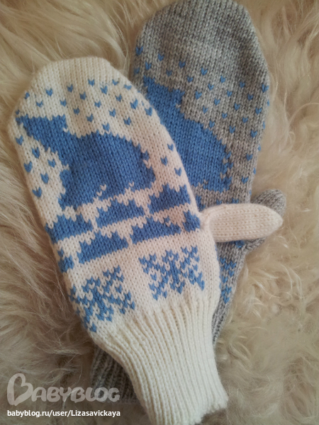 я вот шас цветок для шапки вяжу спицами - и то трудно. а варежки - да еще и с картинкой - я б вообще рехнулась)))