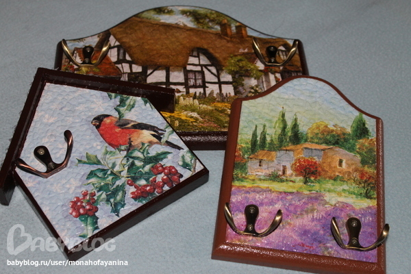 От ключниц твоих просто в восторге!-особенно которые в виде домиков)) Жалко у меня муж не любит рукоделия(((даже мои картины не вешает...храню все в шкафу...