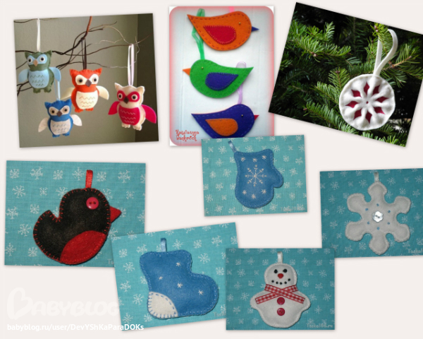 А вот примерный "список" ёлочных игрушек, они будут вешаться на пуговички - снеговички