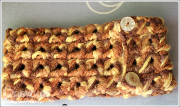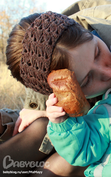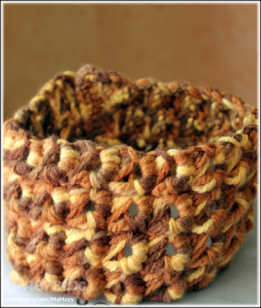 Для мамы по моему не угодала с пряжей. Акрил ну очень толстый. Слишком толстый...Повязка вышла очень объемная...
