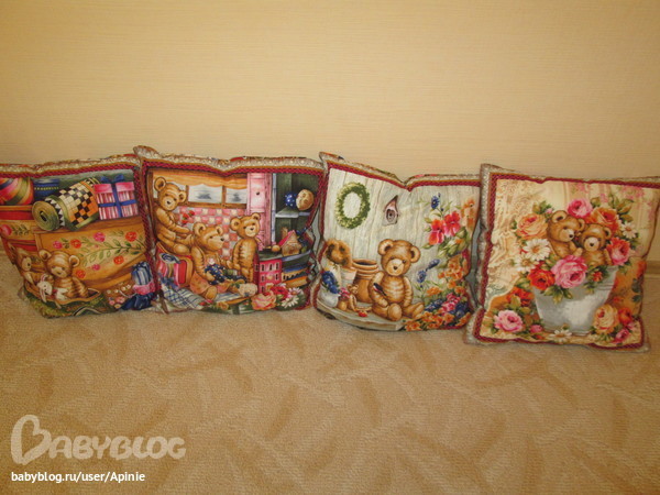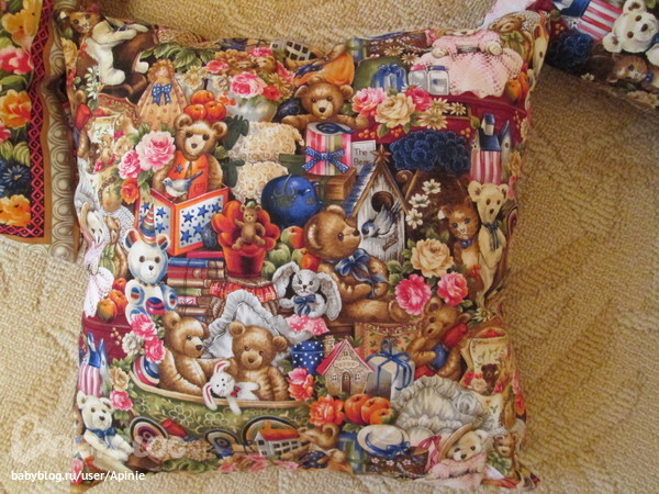 Шитье одежды, выкройки, ремонт одежды, шторы, швейные машины (уже приобретенные)Сшила сынуле в детскую подушечки, кровати и вообще мебели у него нет, а играться лучше на мягком, вот и сшила. Особо работой хвастаться нечего, все просто, но я решила похвастаться тканью. В общем вот они)))