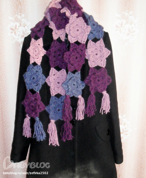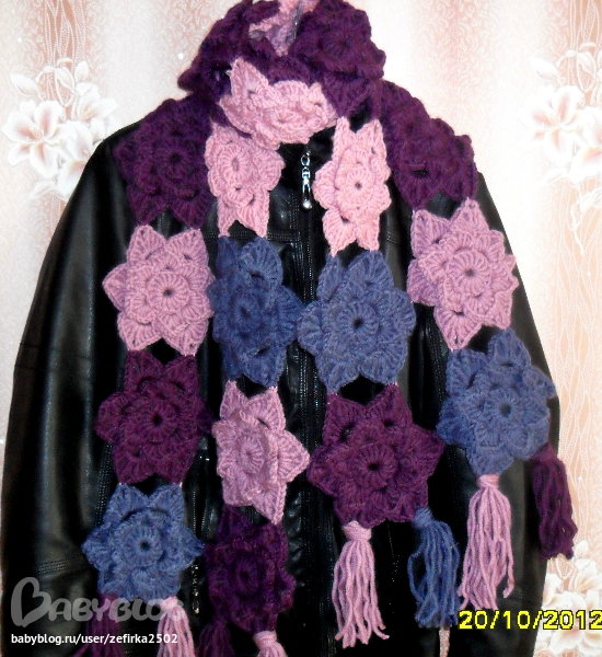 Увидела я его , девочки, на ЯМ , и влюбилась, в шарф, конечно же. Муж смеется и говорит, что я в этом шарфе похожа на клумбу. Девочки, он прав?