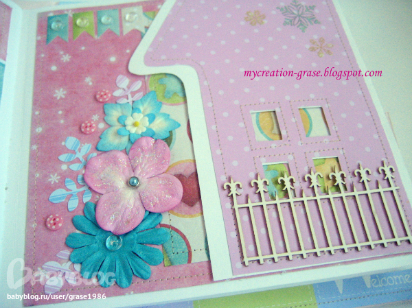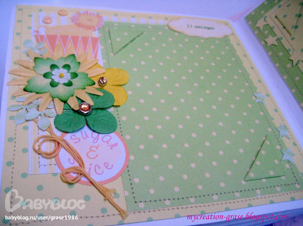 Это разворот про первый Новый год малышки, мой самый любимый в этом альбоме))) Полюбила такое сочетание цвета (хотя раньше его не воспринимала совсем)