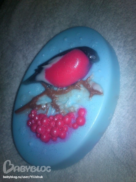 Мыло и косметика своими рукамиОчень понравилась формочка. Пробная заливка первая, косячная, залила горячую голубую основу и веточки с ягодками потекли, вот. Ну ничего в следующий раз исправлю этот косячек.