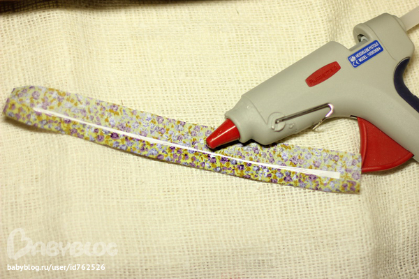 2. Вырезаем полоску ткани в 2 раза шире картонной полоски и обклеиваем.