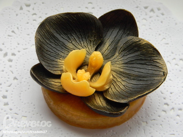 А это такой заказик - золотисто-черный. Календула выступила связующим звеном между змеей и орхидеей))) Честно говоря, просто черная змейка понравилась больше, чем с золотом. Но...пожелание было исполнено. А, чтобы змейке было не скучно перед Новым годом, пусть погадает на календуле вместо ромашки - какой он будет? Новый-то год?