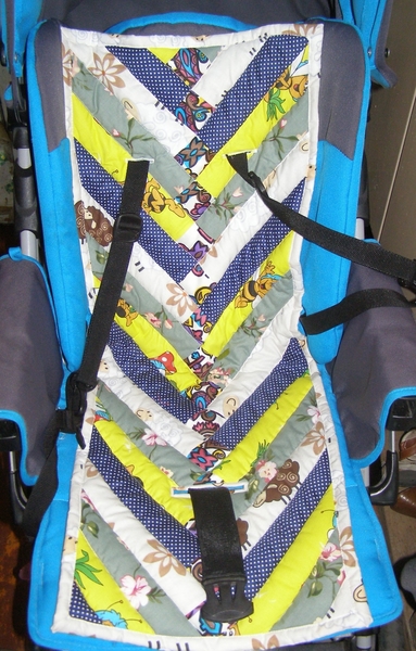 Вот такой чехольчик получился. всего за пау дней. Он нужен был летом, когда практически голой попой по каляске ерзал, но летом меня еще не затащил в свои путы печворк. так что это скорее проба техники косичка.