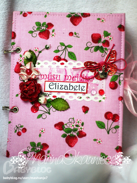 СкрапбукингНу вот наконец то нашей племяшке дали имя-Элизабет.Брат мужа с женой так долго спорили,не могли выбрать имя своей куколке,пока не пришло время идти регистрировать ребеночка.Ну и я блокнот для записей о малышке сделала давно,все ждала имя,что бы добавить его на обложку.Обложка хлопок из Германии,все сранички отштампованы детской тематикой.