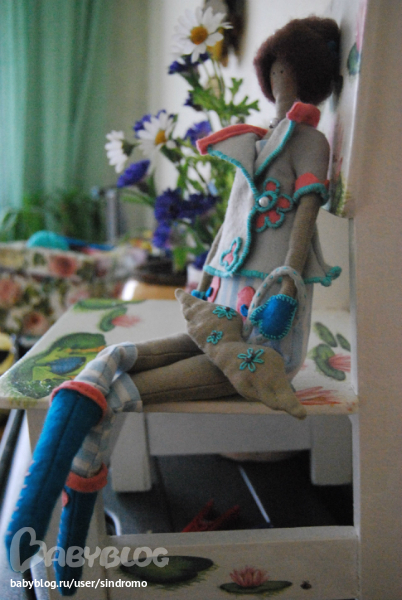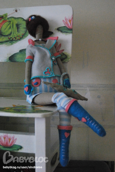 стильная такая Тильдочка получилась!!! мне очень понравилась! а ещё стул, на котором она сидит)))) сами рисовали?