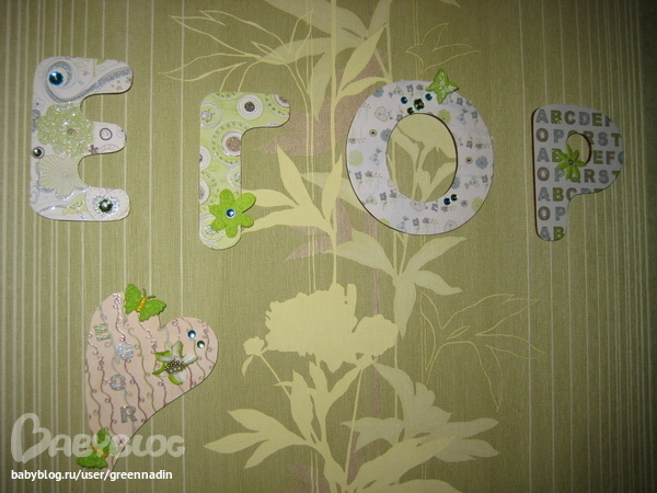 ко дню рождения нашего любимого малыша вот смогла найти заготовки букв из ДСП, наклеили бумагу, все что было под рукой и .. вот что получилось...